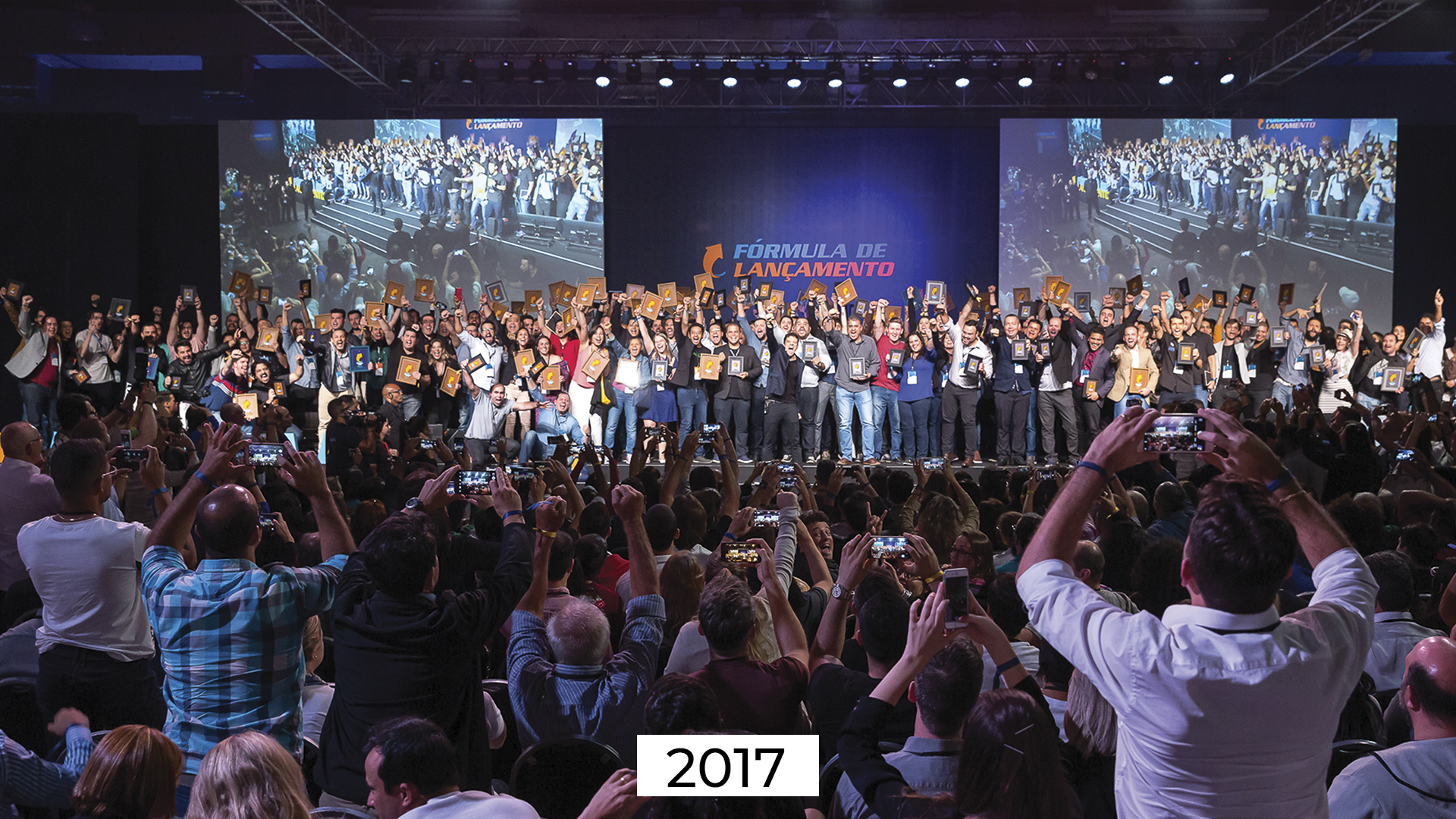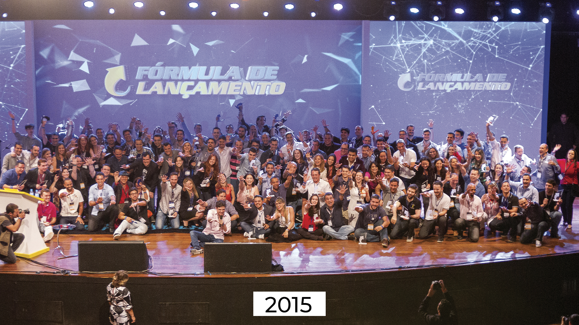 Nas fotos abaixo, você vai poder ver o palco do mundo FL ao longo dos anos (entre 2014 a 2022) durante a nossa premiação. É no Mundo FL que o Erico tem a oportunidade de reconhecer os empreendedores que atingiram grandes marcos em sua trajetória usando as estratégias da Fórmula de Lançamento. Todas as pessoas que estão no palco (presencial ou virtual) estão sendo premiadas entre as categorias 6 em 7, 7 em 7, 7 em 12 ou 8 em 7.