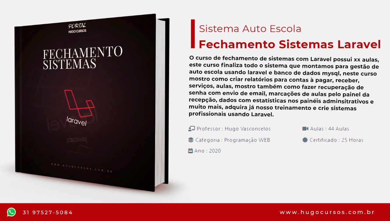 villa / [PACK] CURSOS HUGO PHP / 03 - Pacote de sistemas + aplicativo / 12 - Sistema Auto Escola Laravel 8 / 05 - Fechamento Sistema Laravel